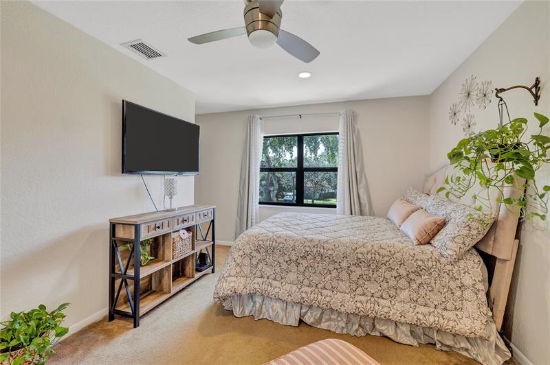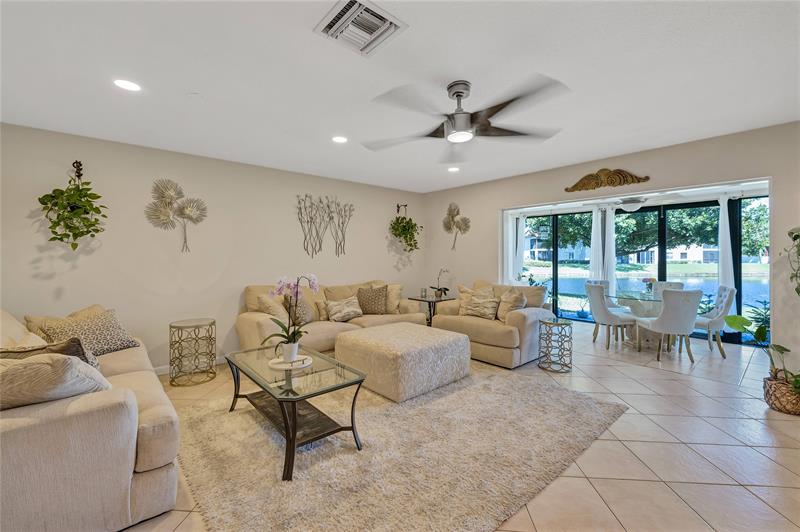 Receive up to 1,500 lender credit with seller's preferred lender. This upgraded townhome presents an exceptional opportunity to experience the comfort & seclusion of townhome living at pricing comparable to area condos. Situated in a secure gated enclave, this residence boasts newly installed impact-resistant windows & sliding glass doors, an AC system & water heater (4 years young), & received fresh interior paint w/ contemporary lighting upgrades just 1.5 years back. Features include Ring motion-activated lighting & surveillance cameras at front & rear entries, plus tranquil water views facing the clubhouse & pool area. HOA covers internet service, cable TV, security monitoring, lawn maintenance, ext. pest management, & additional services. Country club & golf memberships are optional.
