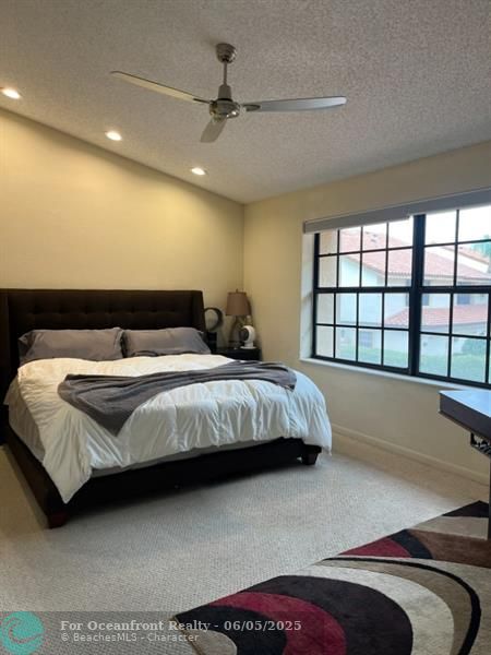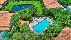 Motivated seller. Boca Pointe condo (main community), corner unit w/ a tranquil water/golf course view on the enclosed glass patio. It has 2 large bedrooms (+ den), the master has a walk-in closet w/ built-ins & hurricane proof windows. The den has French doors, w/ a built-in desk + storage. The kitchen has new stainless-steel appliances. The laundry room has a new machines & AC unit. The layout has high ceilings (hurricane proof sky lights), much natural light, & split bedrooms. The driveway is lengthy. Come visit the La Mirada development, w/ private pool. A+ school district, w/ in walking distance of house of worship. 1 of only 2 country clubs in Boca with optional membership. Located centrally, near all 3 highways & east Boca known for the beach & downtown. EV Ready.