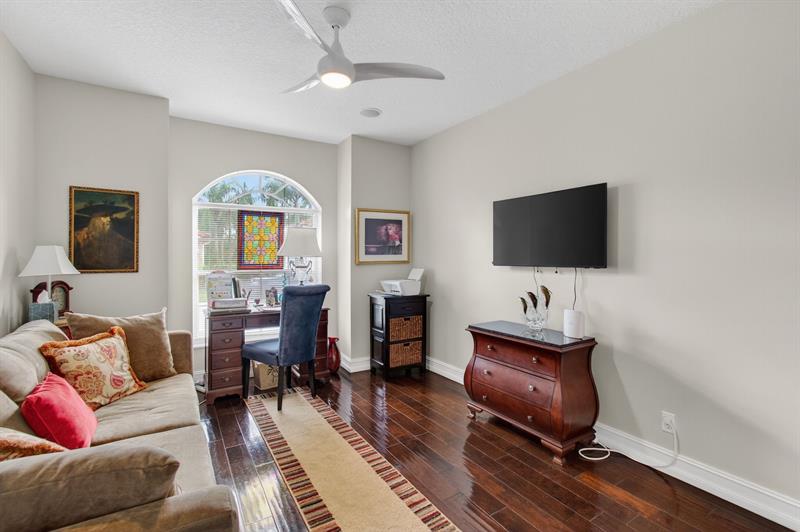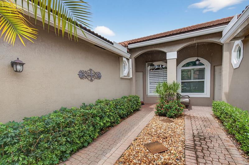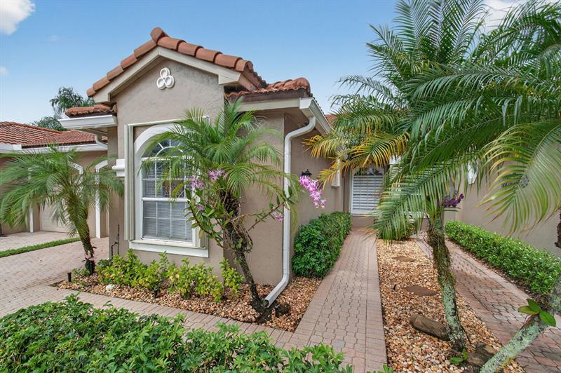 NEW PRICE - REDUCED TO SELL! Mizner Pointe, a gorgeous guard-gated community & exceptional lifestyle. Affordable, easy living HOA monthly dues of $378 provide roof repair/replacement, lawn care, trash, ADT security, internet/cable. Experience soaring cathedral ceiling, thoughtfully redesigned & remodeled European-style kitchen perfectly complementing its elegant sense of spaciousness. Every detail showcases quality craftsmanship, custom stone accent wall, polished 24x24 seamless-grout travertine marble floors, & real wood flooring in bedrooms. Gourmet kitchen with high-end custom cabinetry, soft-close drawers/pull-outs/lazy Susans, display cabinets, premium hardware, stunning granite countertops, a waterfall island, farmhouse sink. NEW roof (3 yrs), NEW gutters (3 yrs), NEW A/C (2 yrs)