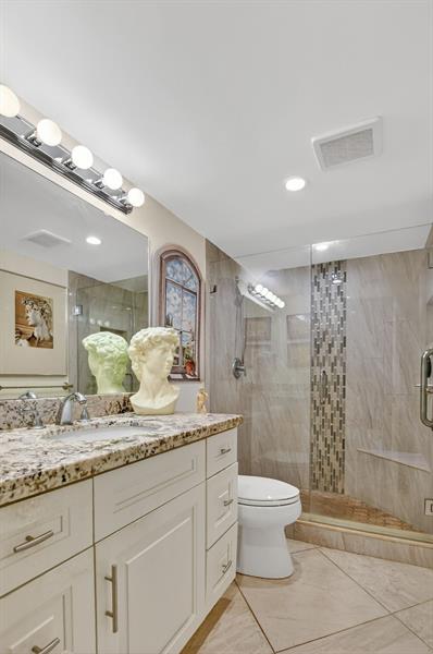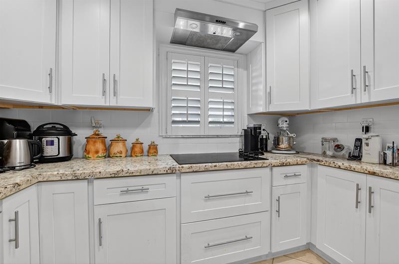 Fully remodeled 2nd floor corner unit near Dixie and Federal Highway on 20th. Great location with shopping, dining, entertainment, and beach options all within 5 minutes. Kitchen has been opened, connecting it to the dining and living areas. No popcorn ceilings! Crown moulding throughout, beautiful tile floors, white cabinets, stainless steel appliances, impact windows and roller shades for hurricane protection, tankless water heater, and in-unit washer/dryer. The primary bedroom has an ensuite bathroom with shower and access to the screened porch overlooking the greenspace leading to the pool. The 2nd br is spacious and has a full wall of closets. Parking space right at the bottom of the stairs. Super East Boca Raton location and great location within the community too!
