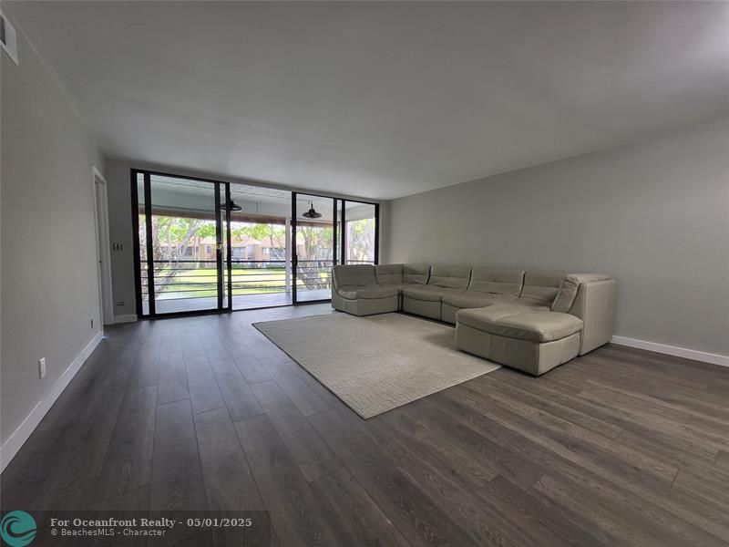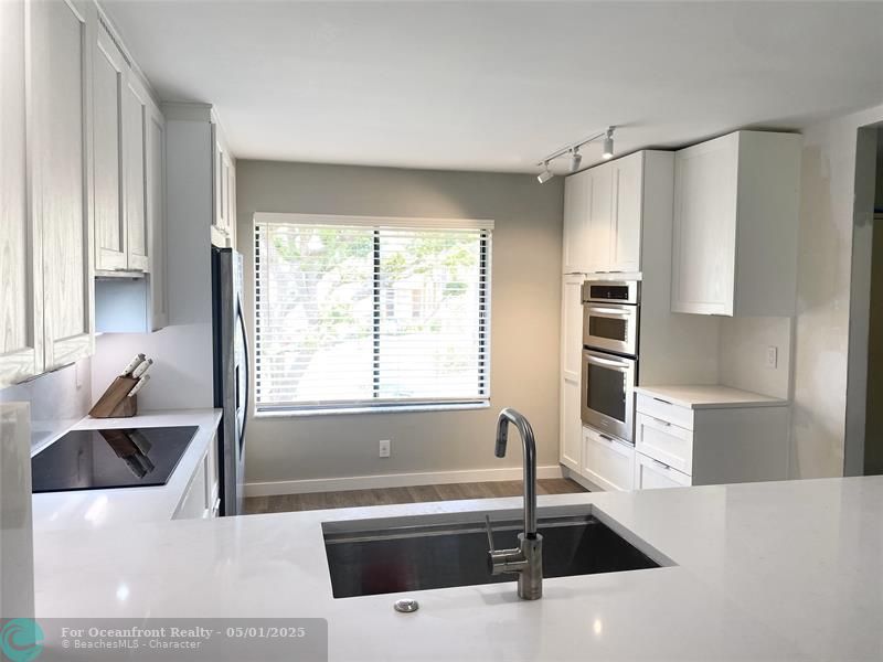 This beautiful unit comes completely furnished, not AI generated: completely renovated condo - Open floor plan, new everything, all baths redone, new terrace Golf/Country Club club membership NOT required (but a bargain) Condo association pool 50 yards away. All lights and thermostats are internet connected (Google) and voice (and manually) controlled Induction cooktop (includes all new cookware) Modern chefs sink, push button disposal Three fridges: main, beverage and back up wide fridge in storage closet Wall unit combo oven microwave Ample cabinets with pull out storage 75" TV in Living room with 5.1 surround sound home theater 65" TV in bedroom with soundbar and subwoofer Custom closets in all bedrooms (walk in in MBR)
