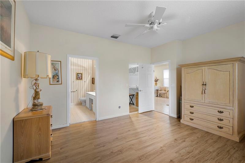 Discover this beautifully maintained, custom-built 3-bedroom, 2-bath home in the highly desirable Majestic Isles community. This residence offers a serene wide lake view and features elegant custom silhouette window shades, crown molding, and knockdown textured walls throughout. The master bedroom boasts new laminate flooring, while the rest of the home is adorned with neutral ceramic tile. Enjoy peace of mind with hurricane shutters on all windows, two-car garage equipped with a brand-new opener. The exterior is enhanced by pavers in the driveway, walkway, and screened patio. BRAND NEW ROOF!! The A/C unit is just two years young.
