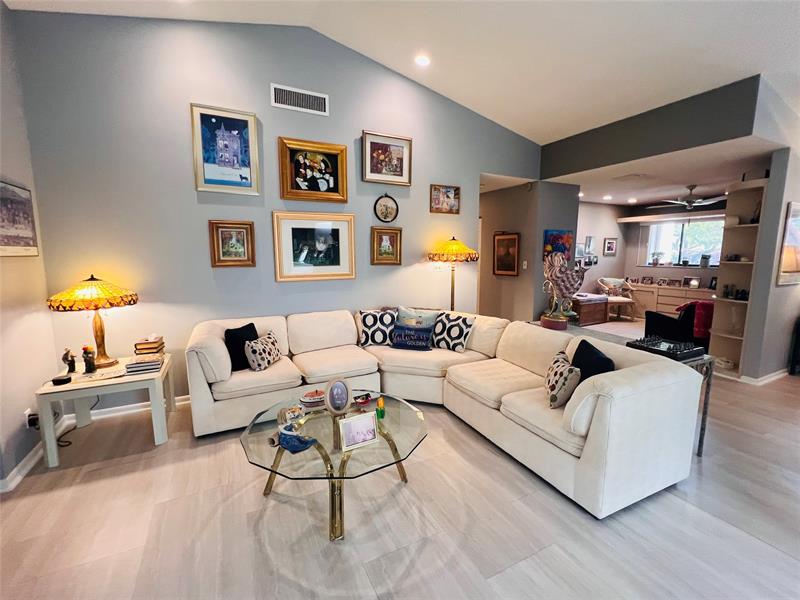 Bright and Open 2nd Floor 2-Bedroom, 2-Bathroom Condo with an added Den/Office/potential 3rd Bedroom and Large, Enclosed Air-Conditioned Lanai. GORGEOUS and PEACEFUL Water Views! Updated Luxury Vinyl Plank Flooring throughout. Warm & Welcoming Unit with Over 1700 sf of Living Area Under Air. New Microwave & 2-Year Old Dryer. Updated Electrical Panel. Accordion Shutters Throughout for Easy Hurricane Prep. Built-ins Create Extra Storage and a Convenient Murphy Bed with New Mattress is in the 2nd Bedroom for Guests. Most Furniture is Included! Quick Closing if Desired. Palm Chase is a Desirable Community Nestled Behind a Church/Seminary 1/4 Mile from the Street to a Gated entrance. Amenities include a Temperature Controlled Pool, Tennis, Pickleball, Hot tub, Sauna, Fitness Rooms & More!
