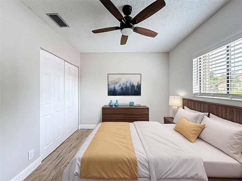 Beautiful Villa, Excellent location. Full home warranty fo 28 months. Covers plumbing, all appliances and more. Community pool, tennis, clubhouse, great fishing too! Just a 4 minute walk to Tradewinds Park. Spacious living area with generous sized bedrooms, fenced patio in back. New paint, cabinetry, newer appliances with warranty. A/C unit less than 5 years old, washer/dryer in unit. Accordion shutters. Wonderful community with gated entrance. Perfect for first time buyers with a small down payment of 3-5% . HOA dues include water, exterior home owner insurance, cable TV and high speed internet. Conveniently located to both I-95 and Florida's Turnpike..............Come see today! Purchase furnished or not..all furnishings available.