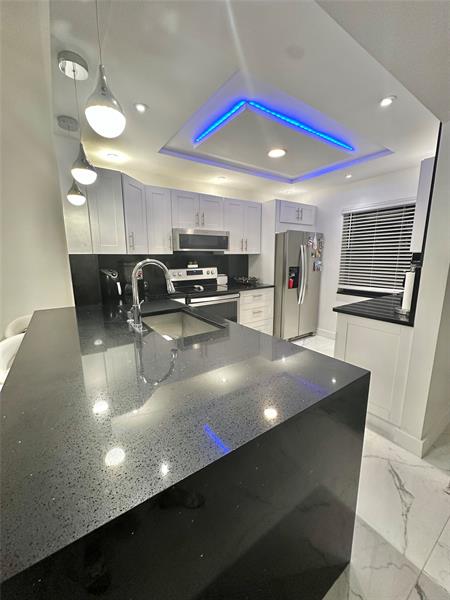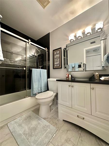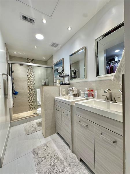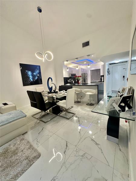 Beautifully remodeled condo featuring a bright, modern design! This stunning unit offers large light-colored ceramic flooring, a stylish accent wall in the living room, and updated lighting fixtures throughout for a clean, contemporary feel. The open kitchen boasts stainless steel appliances, white shaker cabinets, and gorgeous granite countertops. You will fall in love with the master suite, complete with a spacious bedroom and a beautifully updated master bathroom with dual sinks. The guest bedroom has also been tastefully redone and features a beautiful vanity with plenty of storage space. Enjoy peaceful moments on the patio overlooking the serene lake. The patio also includes a convenient storage closet with shelves for extra space.