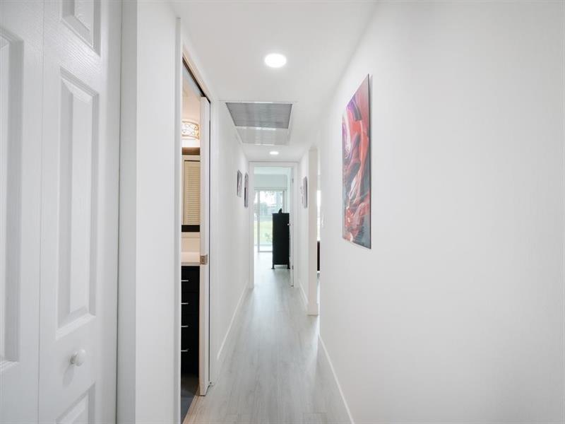 This fully renovated unit has captivating water vistas from its IMPACT glass-enclosed Florida Room, IMPACT WINDOWS & FRONT DOOR. Enjoy the spacious, open floor plan with abundant natural light. Open pass-thru and entryway. Quartz counters with Waterfall edge. SS Appliances, Custom Window Treatments. The bedrooms and bathrooms have been tastefully updated CUSTOM CLOSETS & DOORS. The master bathroom entry moved with barn doors. All SMOOTH CEILINGS with four ceiling fans. SHOWERS IN BOTH BATHROOMS (NO TUB), and the kitchen is a chef's dream. Master bedroom King-size bed. Large flat-screen TV in the living room. Enjoy the peaceful, serene Panoramic water views from the Golf Course Great location & very quiet. Condo is completely furnished and is Turnkey 55+Good income and credit required