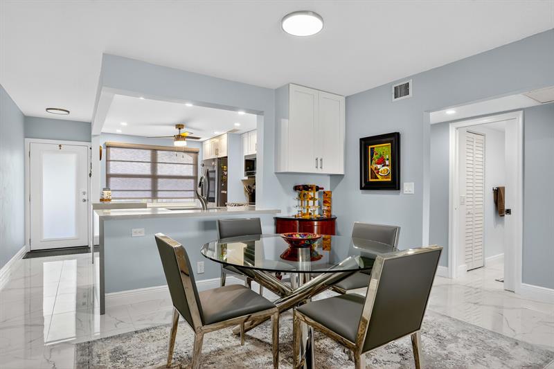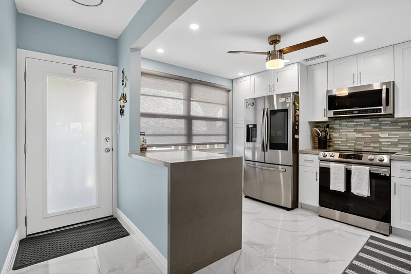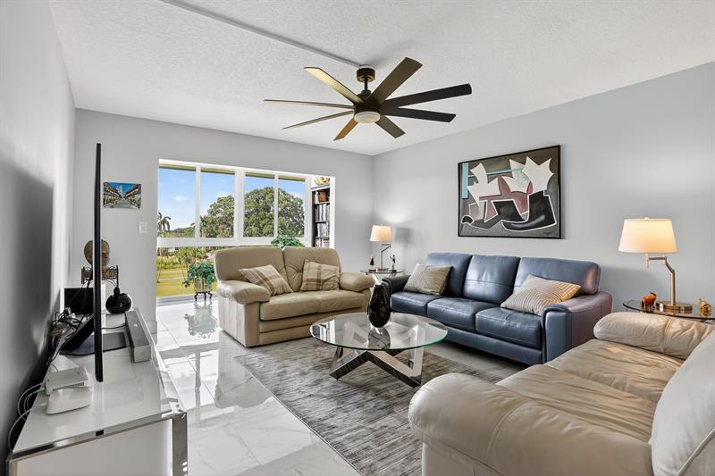 THIS IS IT — WYNMOOR'S MOST BREATHTAKING VIEW of the golf course, lake, and clubhouse! This fully remodeled 2BR/2BA condo stuns with sleek porcelain flooring, a gorgeous designer kitchen with quartz waterfall countertops and breakfast bar, shaker cabinetry, and top-tier stainless steel appliances. Both bathrooms have been tastefully updated, and there's a washer/dryer right in the unit. Impact windows throughout. Set in a guard-gated, 24/7 secured community with unbeatable amenities: a brand-new pool with BBQ area, 18-hole golf course, clubhouse, restaurant, tennis & pickleball, a 962-seat theater, fitness & wellness classes, billiards, 18 heated pools, a resistance pool, hot spa, shuttle service, and 80+ clubs to help you live your best tropical life!