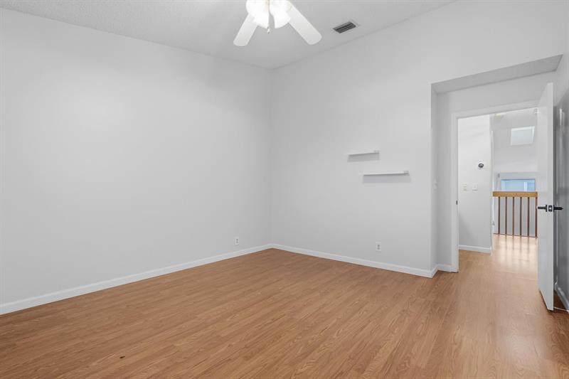 Spacious Townhome. 2 master bedrooms with walking closet. Loft can be used as an office or sitting area. Kitchen with stainless steel appliances, quartz countertops. No carpet throughout. Relaxing screen porch with amazing lake view. One car garage. Accordion shutters. Gated community with great amenities including hot tub, fitness center, heated pool, tennis and racquetball court. CAN BE RENTED IMMEDIATELY, NO ASSOCIATION APPROVAL NEEDED. Roof and skylights 2024, A/C 2020, washer and dryer 2024. Great location close to major highways, restaurants, shopping center, etc.