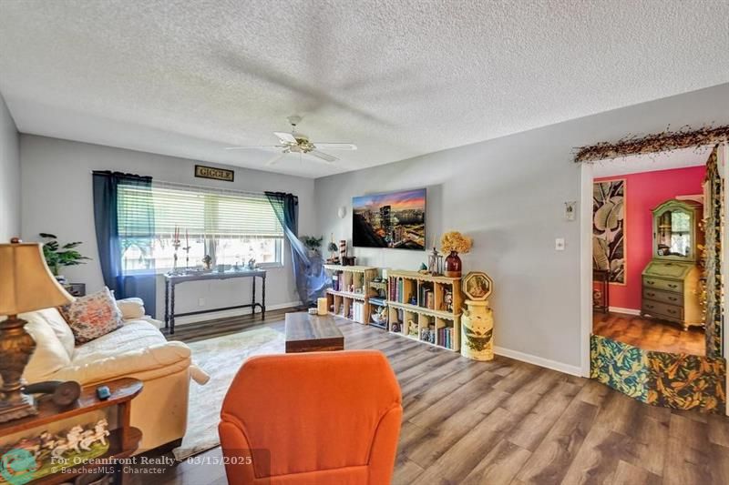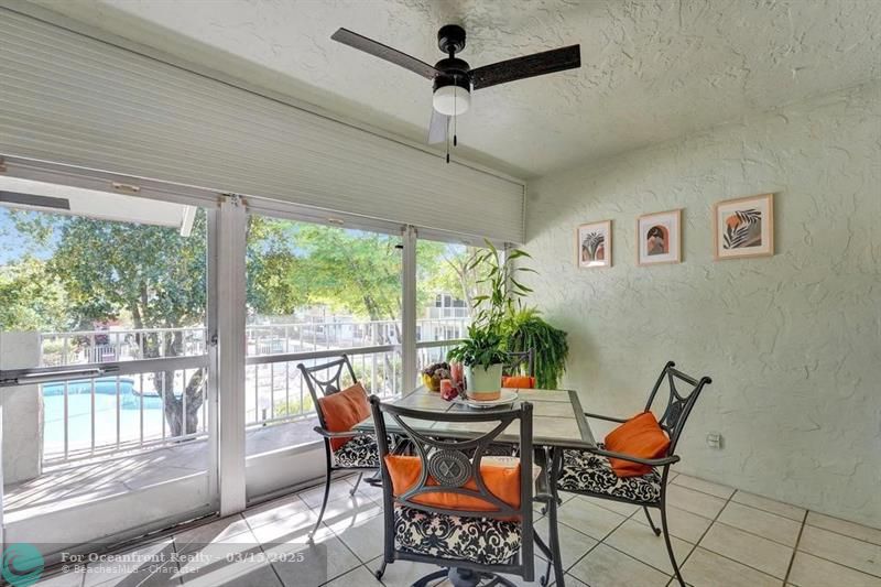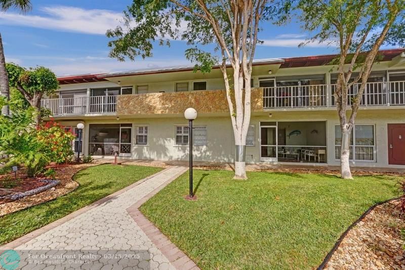 Nicely updated unit in quiet, smaller 2-story complex. Impact windows and shuttered sliding doors lead to a quiet front patio with all-day shade. Great north AND south exposure. Low fees and great common areas add to the easy-living style of the complex. Laminate floors with a modernized kitchen and other great features. Large primary bedroom with walk-in closet and nicely decorated bath. 2nd bedroom with private bath. Only a few steps from the covered, reserved parking spot. All inspections completed and a BRAND-NEW roof. Newly done pool and deck limit further future assessments. Upstairs unit for quiet and privacy. Possible Seller financing available.