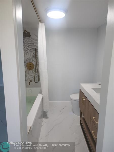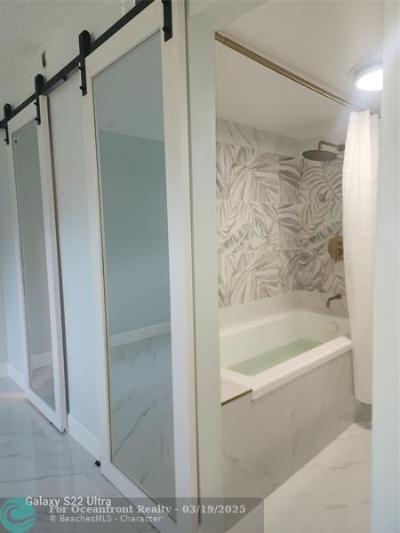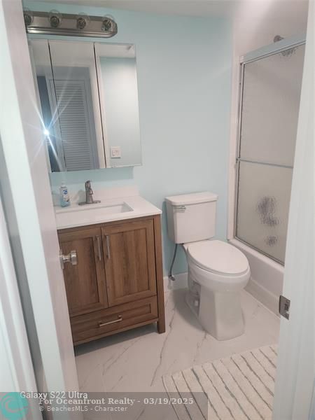 Renovated and Ready! Enjoy the comforts & convenience of this spacious 2 bed 2 bath 1st floor unit in North Gardens a 55 + community located minutes from Deerfield Beach! Park by your front door and walk into the open kitchen with granite countertops, new appliances and beautiful 32"x32" porcelain tile floors throughout. The dining room and living room are open and you can enjoy the enclosed patio that overlooks the courtyard and swimming pool. The Master bedroom has beautiful mirrored barn doors one opens into the Master bathroom that has an oversized jacuzzi tub, vanity with marble top, brass fixtures and smart toilet. The other door opens into the master bedroom closet and continues into the laundry area, with access to the guest bedroom and updated guest bathroom. A must see!