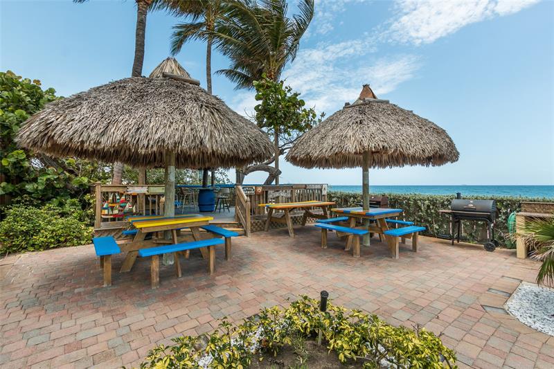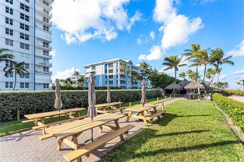 Enjoy your own private beach at this true slice of paradise! This beautifully updated condo in Ocean Harbor offers impact windows, tile flooring, private laundry, a large floorplan & a spacious balcony with serene pool, ocean, & garden views. Ocean Harbor is one of the most sought-after buildings in Deerfield Beach, featuring a private deeded beach with gated entry, a large tiki hut with 2 Grills, Blackstone, picnic and bar-style seating, a heated pool, full gym, recreation room, billiard room, and your own private storage unit. Located in an unbeatable oceanfront setting, you're just a short walk along the ocean to Downtown Deerfield Beach with shops, restaurants, bars & the world-famous International Fishing Pier. There is also a pickleball court & a playground right across the street!