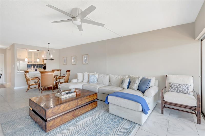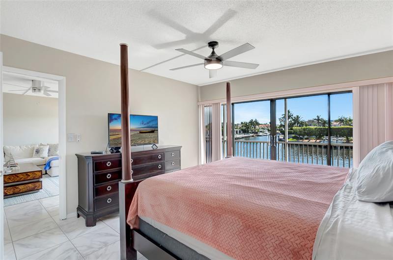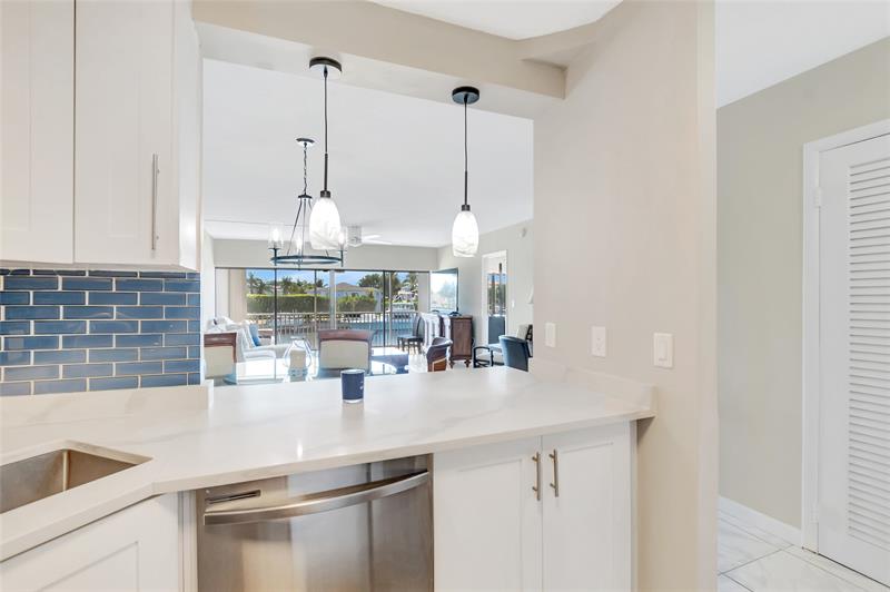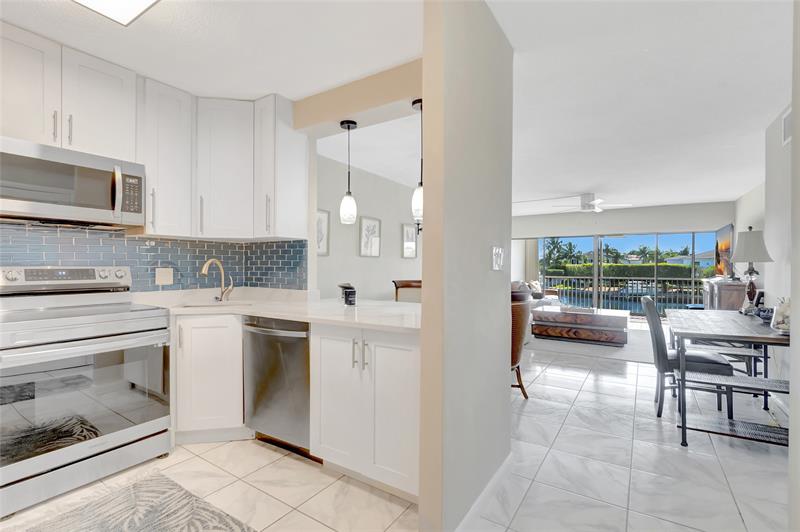 Paradise awaits in this GORGEOUS waterfront condo located at River House Towers in Deerfield Bch! Enjoy breathtaking river views from this REMODELED 2 bedrm, 2 bath condo featuring an open floor plan, split bedroom plan & tile flrs thru-out. White kit w/shaker cabs, corean cntr tops & subway backsplash! Both beautifully renovated bathrms have glass shower doors! Unit comes nicely furnished w/King bed in both rms & 3 flat screen tv's. Screened patio overlooks ENDLESS WATER VIEW & STUNNING SUNSETS! Enjoy peace of mind w/accordion shutters on windows & balcony, covered pkg & no age restrictions! Bldg passed 40 yr inspection! Amenities incl pool, clubhouse w/fitness cntr, hotwire TV/Internet incl & boat dockage when available! Min to shopping, restaurants, fishing pier & beach! WELCOME HOME!