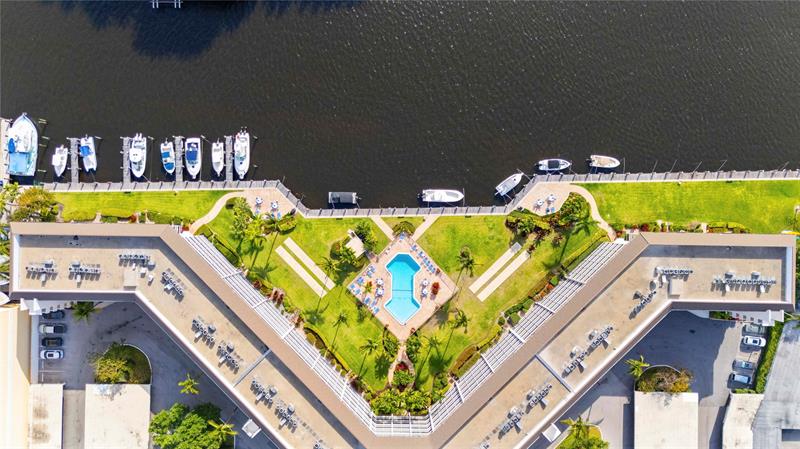 Stunning Waterfront Condo w/Beautiful Views! Enjoy breathtaking sparkling water views right from your condo, whether you're relaxing on the large screened balcony, swimming with friends, or fishing from the dock. This spacious 2-bedroom, 2-bathroom condo offers an open floor plan w/porcelain tile has immediate water views, perfect for anyone who loves the tranquility of waterfront living. The updated kitchen features wood cabinets, granite countertops, and a brand-new refrigerator. Impact windows and doors, you can feel safe and secure while soaking in the beauty of the Hillsboro River and the prestigious Royal Palm Estate. River House Towers has passed its 40-year certification. The maintenance fees include cable TV and internet. Laundry and additional storage are located on each floor.