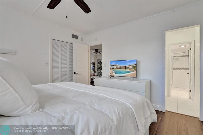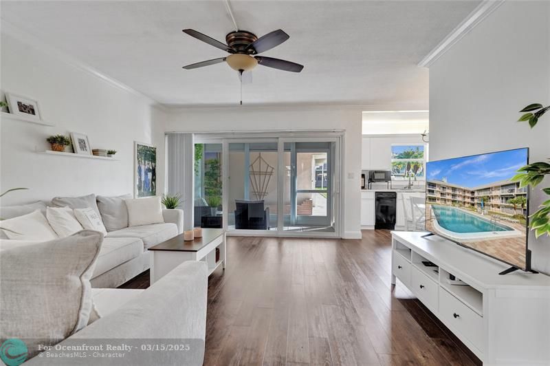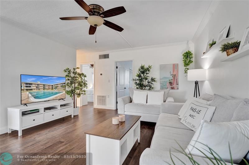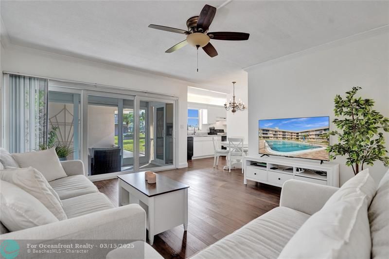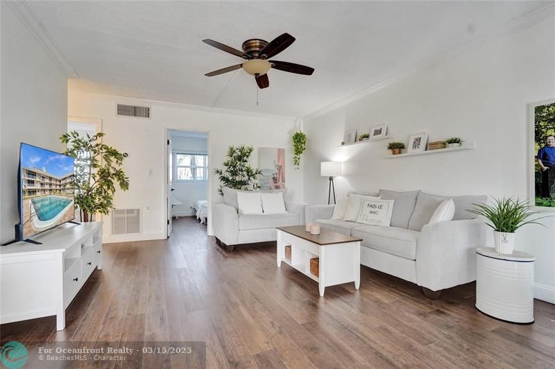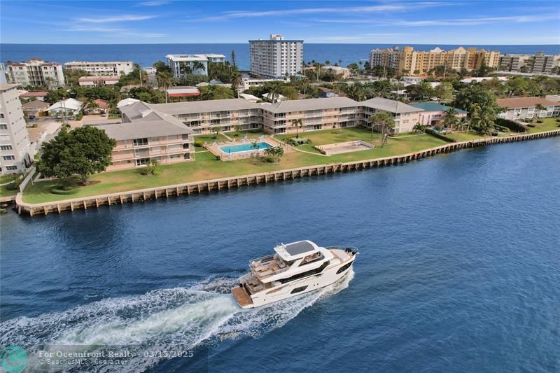 Prime Location! This charming, updated 2-bedroom, 2-bathroom condo is ideally situated on the Intracoastal, just steps from the beach. Located in a sought-after, all-ages community, this unit features hurricane impact windows throughout, including a unique triple-gliding front door. Enjoy the view and the coastal breeze from the comfort of your spacious screened-in porch. Upgrades include baseboards, crown moldings, flooring, and a recently serviced A/C system. The building features a brand-new roof, a heated pool, and the unit comes with an additional storage space. Current assessment already paid by the sellers. The building is well-maintained. 3-month minimum rental policy after 2 years of ownership. Close to fine dining, shopping, entertainment, and more! Florida Living at its finest.