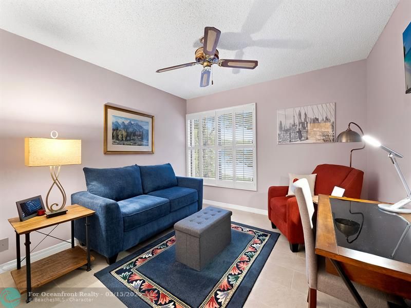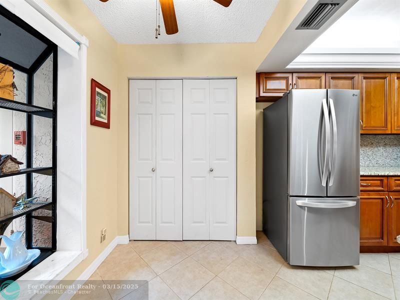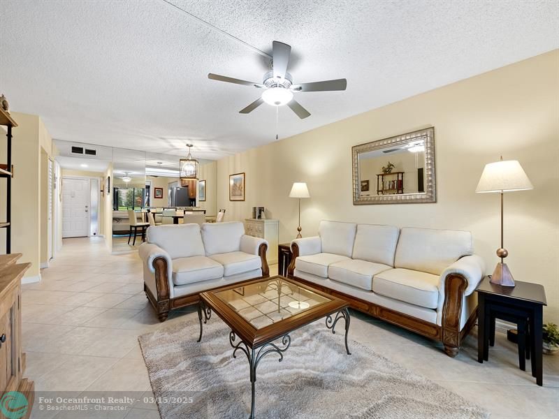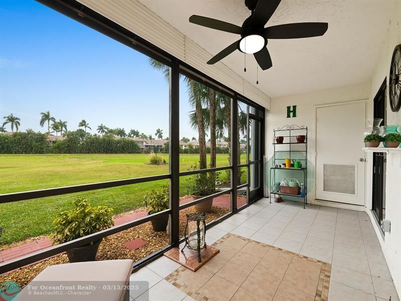 Gated Boca Delray Golf and Country Club a 55+ NON equity membership club! Updated move in home located on first floor. New Roof 2023, two bedrooms, two bathrooms, eat in kitchen with granite counter tops that overlooks an open, bright and spacious living area with tile floors throughout, updated bathrooms, utility room with washer& dryer located in condo, storage room on patio. Relax on the screened in patio overlooking an outdoor patio space and a golf course view. Boca Delray offers a country club life style with NO mandatory membership. Amenities include 2 pools, 4 tennis courts, pickleball court, fitness center, cafe and more! If you are interested in Golf you can pay as you play.