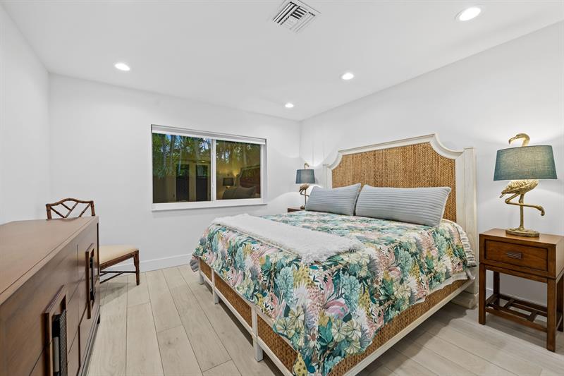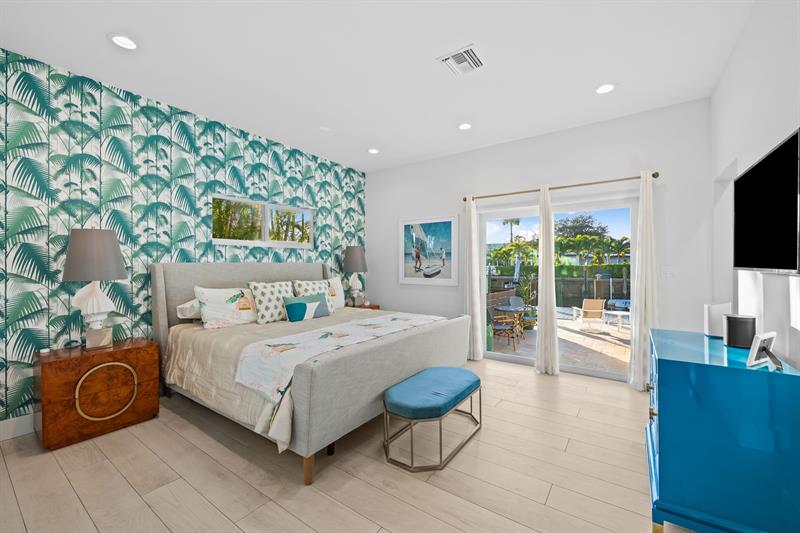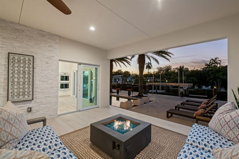 Exquisite waterfront retreat in the esteemed gated Bal Harbour. This single-level dream home feels like new construction. Two private ensuite wings, all 4 bedrooms with king beds, complemented by elegant Italian flooring throughout. The chef’s kitchen boasts a 10' ceiling, custom cabinetry, a gas range, and a stunning Caesarstone waterfall island. Expansive sliders create seamless indoor-outdoor living, opening to a covered firepit lounge.