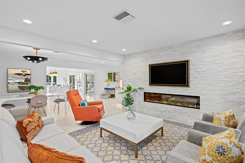 Indulge in a saltwater pool with fireplace, outdoor shower, and magnificent Sylvester Palms. Private dock w' boat lift offers ocean access via Middle River’s single fixed bridge. A two-car garage, indoor laundry, street-gas and updated electric & plumbing. Conveniently located by Whole Foods, Publix & Trader Joe's and minutes to the beach and airport.