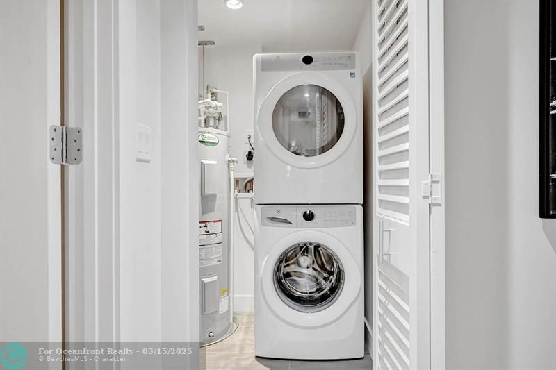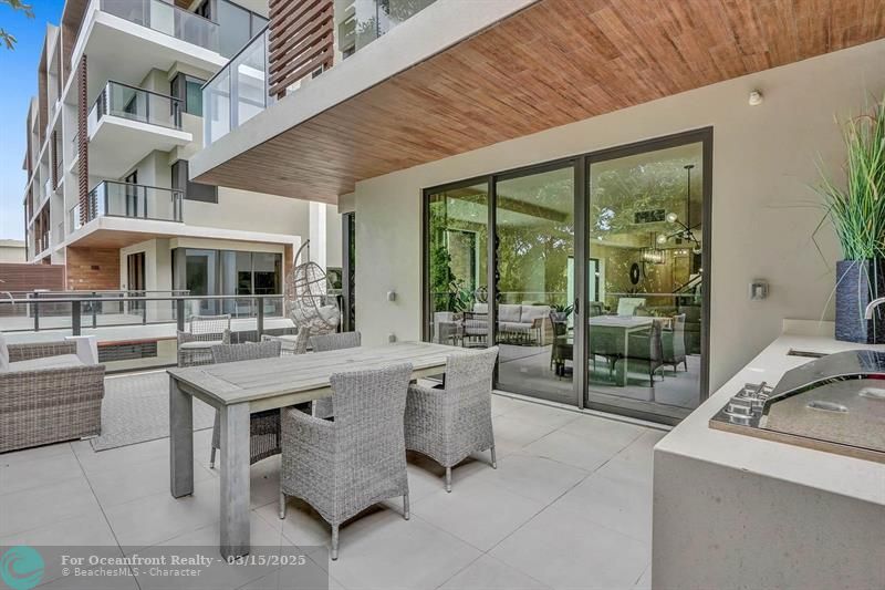Newer construction-corner 2-story condo w/floor-to-ceiling glass lets the light pour in & has views of lush greenery, bringing the outdoors in. Beautiful large gourmet kitchen has high-end finishes w/subzero & wolf appliances, quartz counters & Italian cabinetry. Direct elevator entrance into this move-in ready property furnished w/a neutral palette. Huge terrace w/summer kitchen & backyard atmosphere. Private home feel w/the convenience condo living. Large main bedroom w/double w-i-c. Bedrooms are ensuite & have balconies. 2 covered parking spaces & storage closet. 2-story clubhouse w/pool, fitness center & more. Maintenance fee incl. EVERYTHING except electric. This amazing residence is very close to restaurants, shopping and only 600 ft to the beach! Pets welcome. 2 parking spaces.