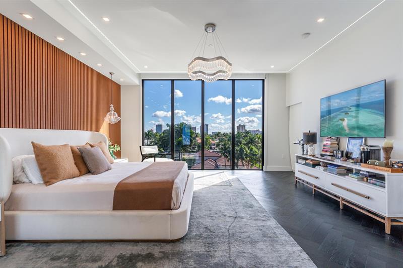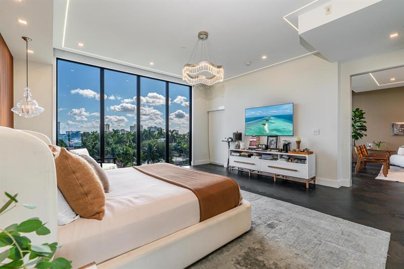 SPECTACULAR FLOW-THROUGH WATERFRONT PENTHOUSE in PRIME LAS OLAS ISLES LOCATION! 3bed/3bth residence with a 40' DOCK (NO FIXED BRIDGES), PRIVATE 1,100 SF ROOFTOP DECK, and panoramic sunrise& sunset views through floor-to-ceiling impact windows. Enjoy breathtaking vistas of the Las Olas canals, ocean, & surrounding multimillion-dollar estates. The unit features a PRIVATE ELEVATOR, over 10' ceilings, smart home automation with Lutron controls for shades, lighting, TV & sound. The gourmet chef's kitchen includes Wolf gas stove & oven, Sub-Zero appliances, wine cooler. 2 expansive terraces. Amenities: saltwater pool, gym, outdoor barbecue area, SUP/kayak rack, bike room, extra storage. 2covered parking spaces. Professionally decorated. Short walk to the beach, restaurants, upscale shops.