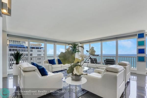 YOUR DREAM C0ASTAL RETREAT AWAITS! Welcome to this 4 bedroom/4 bath Oceanfront Residence on the GALT OCEAN MILE. A rare blend of coastal elegance, expansive living space and resort style amenities. This stunning 3296 sqft condo created by combining Units 911/909 offers a unique opportunity for luxurious oceanfront living. Wake-up each day to the sound of waves & breathtaking sunrises from your private wrap around balcony offering panoramic views of the Atlantic. This open concept layout with floor to ceiling impact windows/doors, gourmet kitchen with Porcelanosa-Krion white countertops,Subzero refrig,Wolf oven and spacious island. The Master Suite with private en-suite bathroom and additional 3 bedrooms are generously sized with access to 3 full baths. The Only Rooftop Pool on the Galt.