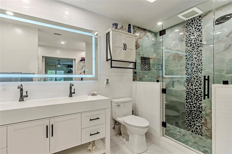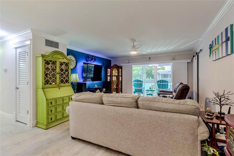 View of canal from your enclosed porch, tile/wood flooring throughout, brand new bathrooms, LG washer and dryer in unit, impact windows, new a/c and hot water tank, automatic patio shades and smart LED lighting.