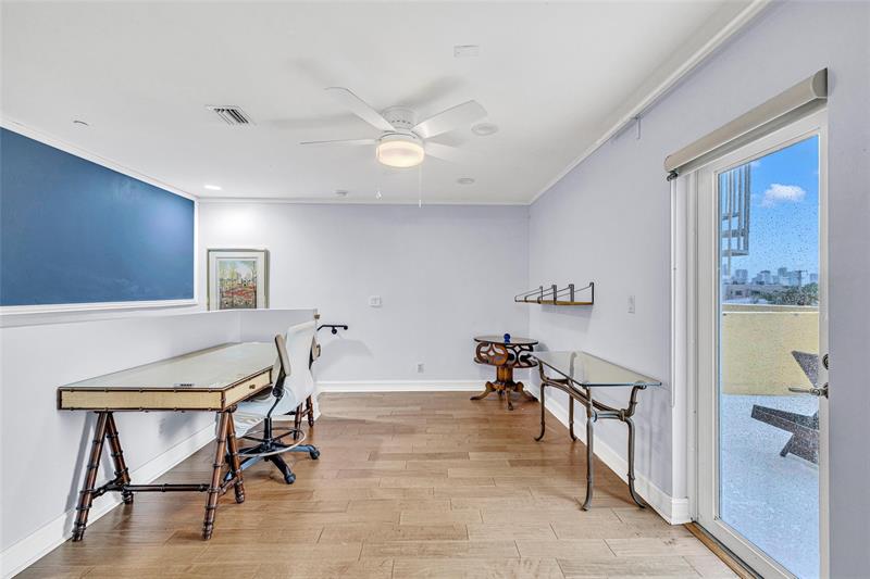 Discover a chic Victoria Park townhome featuring an elevator, three spacious balconies, and a rooftop terrace. A gated garden entry welcomes you into generous living spaces and a chef’s kitchen equipped with premium appliances, a gas range, an island, and plenty of cabinetry. Natural light fills the open layout through east-facing bay windows. This level also includes a two-car garage, pantry, powder room, and elevator. Upstairs, the primary suite has a remodeled bath, walk-in closets, and a private balcony. There are two more bedrooms, an updated bath, and laundry facilities on this floor. The top level features a loft-office, a full bath, and a fourth bedroom with its own balcony and rooftop access. Ideally situated near beaches, Las Olas, shopping, dining, and various parks.