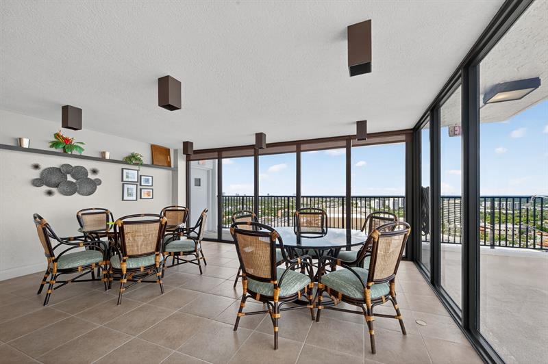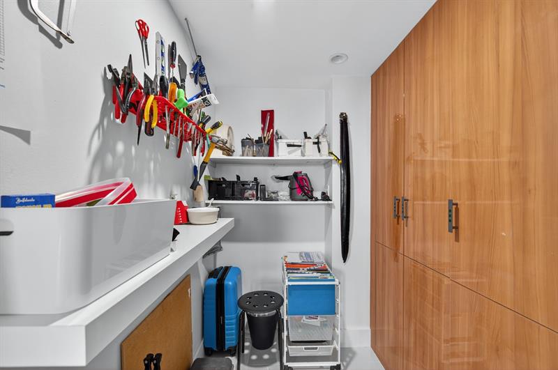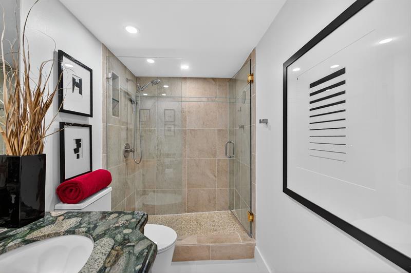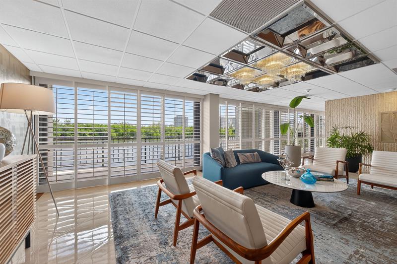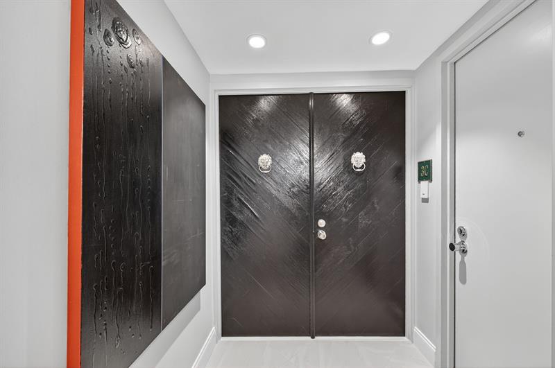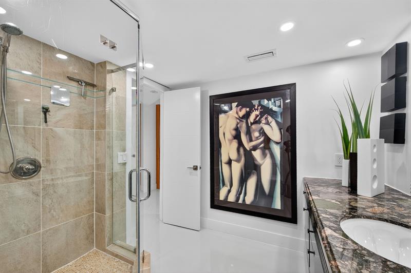 FEATURES INCLUDE A SEMI-PRIVATE ELEVATOR, KITCHEN WITH GRANITE AND STAINLESS STEEL APPLIANCES, IN-UNIT WASHER/DRYER, PRIVATE TRASH CHUTE, NEW PORCELAIN TILE FLOORS, IMPACT WINDOWS & DOORS, GARAGE PARKING, AND GENEROUS CUSTOM CLOSET SPACE.