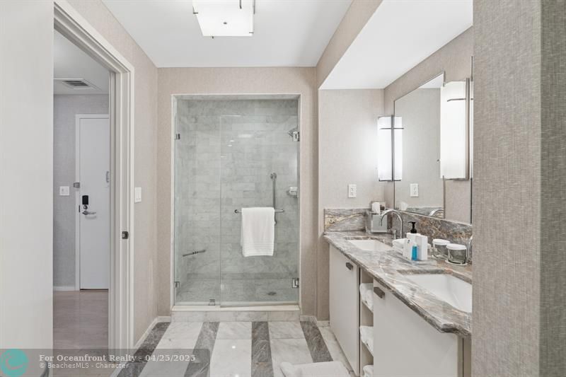 furnished by "Arte facto," and boasts luxurious marble bathrooms, a compact kitchen equipped with Subzero and