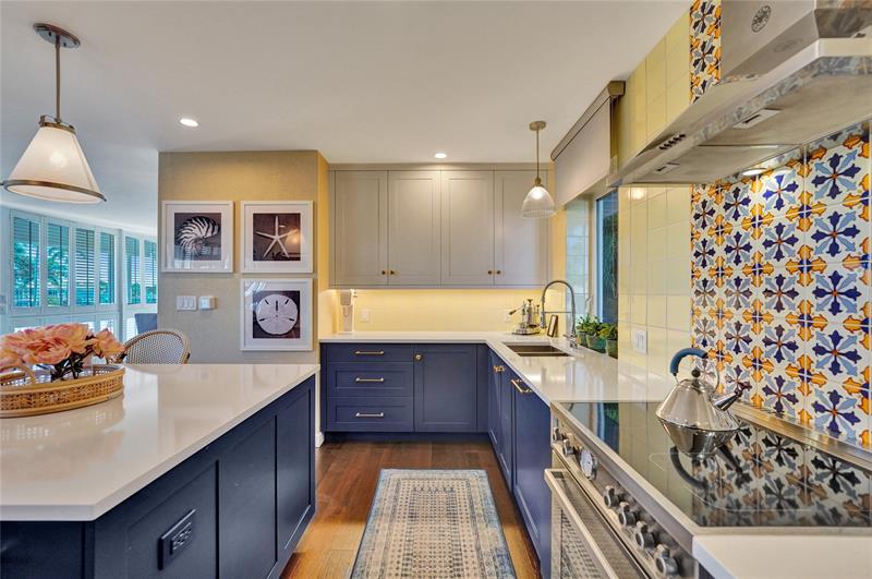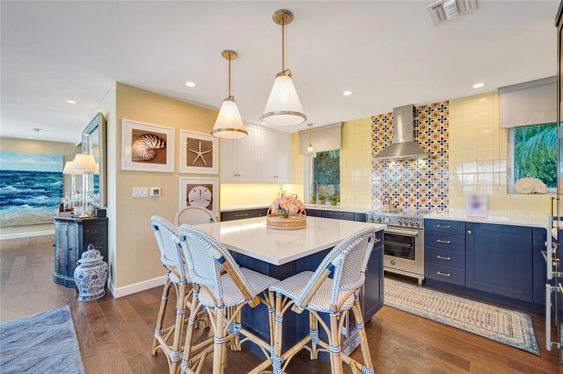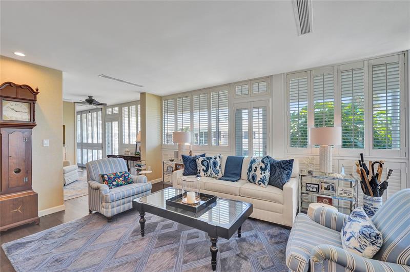 Exquisite one-of-a-kind waterfront residence, completely renovated and re-designed in 2020. Two units combined into one expansive home showcasing stunning wide-water views within a boutique mid-century modern waterfront community. Refined interiors include wide-plank hardwood floors, impact windows/doors, plantation shutters, with abundant natural light. Open, custom chef’s kitchen features quartz counters, center island, Bertazzoni appliances (two ovens), and built-in wine/beverage coolers. Oversized primary suite w/ sitting area, separate den w/ built-ins, & full laundry room w/ Miele washer/dryer. Two parking spaces (fits 4 cars tandem). A rare offering—luxury, character, and unmatched waterfront living, all moments from Coral Ridge Yacht Club, Galleria Mall, fine dining, and the beach.