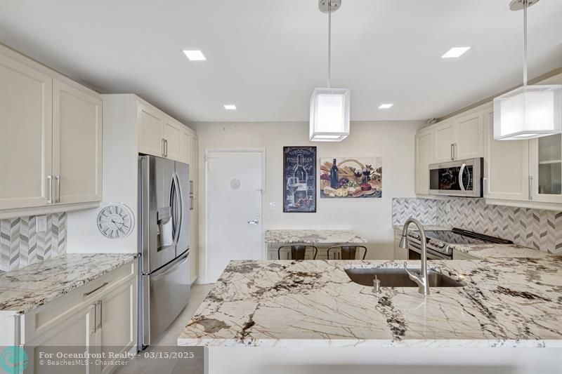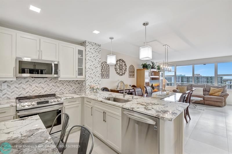 GORGEOUS RESIDENCE - OCEAN & INTRACOASTAL VIEWS - Open Chef's kitchen features Granite countertops, LG appliances and custom inlaid backsplash, perfect for at home luxury or entertaining. Bath features a seamless step in shower. Custom closets throughout. A beautiful move in ready home where you can watch ships going out to sea from the comfort of your living room. Resort style community on 5+ acres with full amenities. 24/7 security, heated pool, bocce ball, fitness center, bicycle room and IntraCoastal Clubhouse only for this building. 55+, Cash only. Maintenance. includes high speed fiber optic internet & cable. Building requires: one buyer to be age 55 or over, min 700 credit score, min $71,785 annual income, Cash only, no renting.