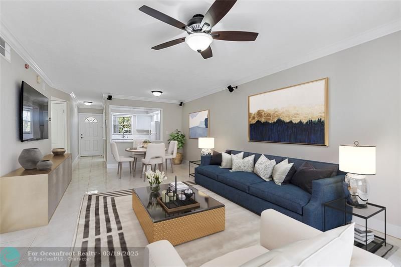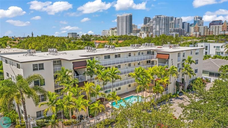 This Victoria Park's Building is approved for Fannie Mae & Freddie Mac financing w/ as little as 5% down. Welcome to a slice of paradise at the Devonshire, where modern luxury meets the vibrant energy of Las Olas, Ft. Lauderdale! This meticulously maintained 2BR|2BA condo offers an open floor plan filled with natural light, showcases a palette of crisp whites & contemporary grays. Elegant new crown molding, baseboards & porcelain tile flooring throughout creates a continuous, luxurious feel. Recent updates incl. high-efficiency 16seer A/C, electrical panel, Nest thermostat, and Ring doorbell. The building has recently undergone renovations, incl. a new roof (2021), modernized elevator(2015) & resurfaced heated pool(2024). Additional perks; Samsung smart TV & a pre-wired Bose with speakers.