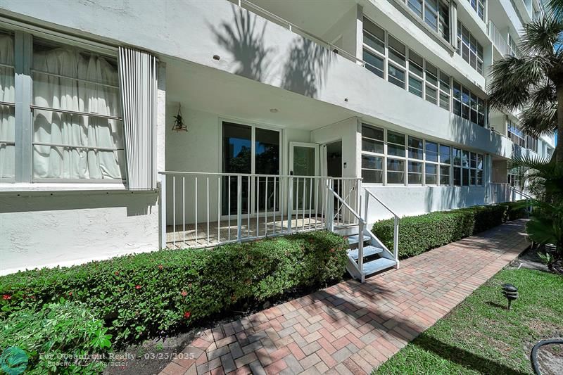 Welcome home to Fort Lauderdale, PRIME LOCATION!!! First floor spacious 1/1.5 bath home! This unit has direct access to swimming pool, beautiful courtyard, BBQ area, fitness center, and middle river. 2 parking spaces- 1 is covered parking! Hurricane impact windows and doors! Private dockage may be available.