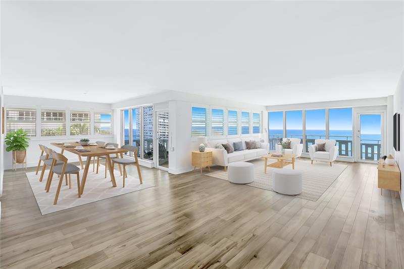 Largest condo in neighborhood w/over 2600+ sq. ft., 3 huge bedrooms w/2 master suites plus 3 Full Baths. Features separate laundry rm, large foyer, expansive living/dining w/ balconies overlooking coastline & ocean to Miami, ships & super yachts. Unique, Corner unit offers south views to Miami & north to private beach & Atlantic Ocean. Includes 2 ACs, 2 water heaters, 2 covered parking spaces, 2 balconies. Estate sale—rare opportunity to own and remodel your dream oceanfront home in secluded area on the widest beach. Walking distance to the New Pier 66, w/restaurants & lounges, Las Olas shopping & airport. Amenities: heated pool, gym, social room, 24/7 security, rent allowed first year for min of 3 months. Being Sold AS IS. Milestone inspections complete. New roof, New elevators,New ELSS
