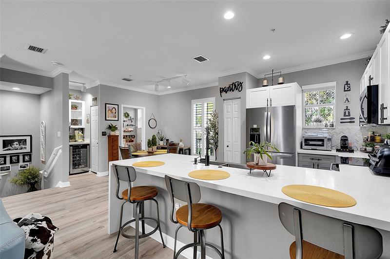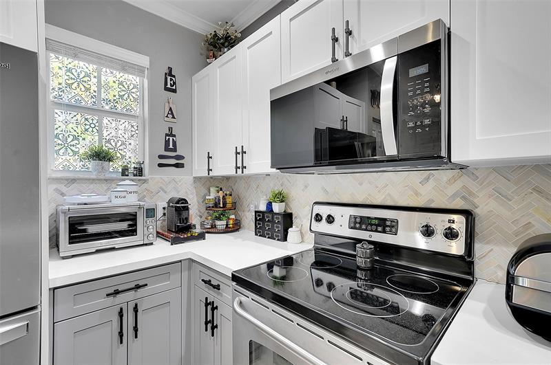 IMMACULATE MEDITERRANEAN STYLE TOWNHOME IN GATED COMMUNITY. 2 BEDROOM 2.5 BATH WITH JACUZZI TUB IN MASTER BATHROOM COMPLETELY UPGRADED HOME WITH NEW KITCHEN AND QUARTZ COUNTERS WITH WATERFALL. ALL STAINLESS STEEL APPLIANCE, WATERPROOF VINYL FLOORING THROUGHOUT, BATHROOMS UPGRADED, CLOSET ORGANIZERS IN 2 BEDROOMS IMPACT GLASS, PLANTATION SHUTTERS ON FIRST FLOOR, TANKLESS HOT WATER 2025, A/C 2025 WITH TRANSFERRABLE WARRANTY, WASHER/DRYER 2023, WINE FRIDGE STAYS,