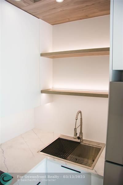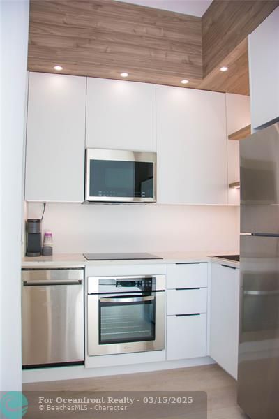 Make your dream home a reality in this charming totally renovated first floor studio (No Elevator required) located in an ocean front building. Abundance of natural light with a slider to the patio with ocean views. The kitchen offers new modern cabinets, with white quartz counter top, new stainless steal appliances. Studio is completely remodel ready for new owner with Murphy bed, TV, and leather sectional included. Enjoy the sunrise to sunset from the patio. The private patio leads to the pool, BBQ area and beach access. Light wood grain water proof floors, impact windows and doors, lighting, A/C, new renovated bathroom, tons of storage, plus loft and custom walking closet. Walking distance to local restaurants and shopping, this move-in-ready paradise! Garage parking available.