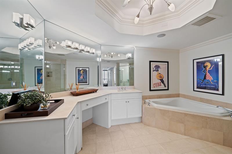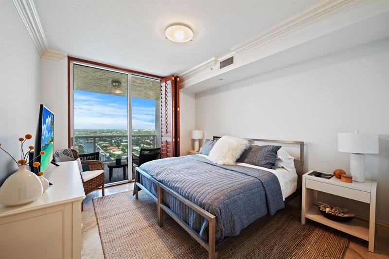 Rare Opportunity in L'Ambience. Enjoy luxury coastal living in this 2,800 sq. ft., 3-bedroom, 3.5-bath residence located on the 17th floor of the highly sought-after L'Ambience building. This spacious condominium offers breathtaking views of the Atlantic Ocean and the Intracoastal Waterway from two private balconies. A private elevator opens directly into a bright, open-concept living and dining area with floor-to-ceiling windows. Each bedroom features an en suite bath and generous closet space, providing comfort and functionality throughout.