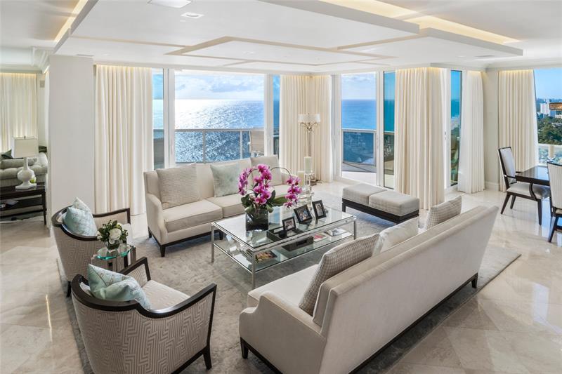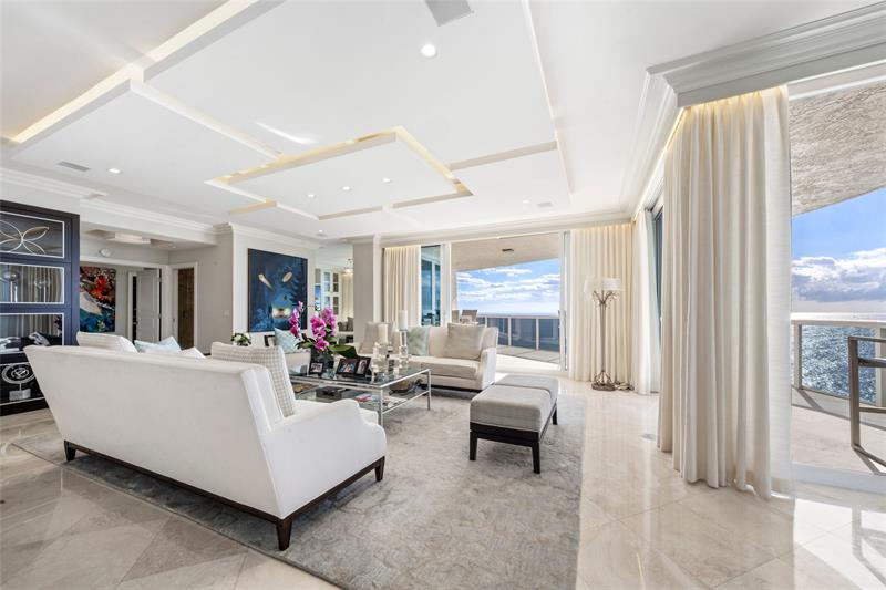 DIRECT OCEAN FRONT RESIDENCE, RARELY AVAILABLE, SPECTACULAR DIRECT OCEAN AND COAST LINE VIEWS, TRULY BEST SOUTHEAST VIEWS & FLOOR PLAN AROUND, Luxury living on the sand. Completely renovated with designer finishes. Open Floor plan,3 bedrooms plus office. Floor to ceiling Impact Glass, Private Elevator, private foyer, Smart home technology, new AV Equip & TV, Architecturally designed ceilings, customized automated window treatments, marble floors, 2 New AC units, 2 New HWH, New House Water Filtration system, tons of storage . This exquisite gated residence is situated on over 10 acres of lush landscaping with resort-like amenities, 2 pools, tennis courts, fitness center, private beach pavilion, cafe, spas, saunas, steam room, pet friendly, 2 Garage Spots,1 w/EV Charging Station