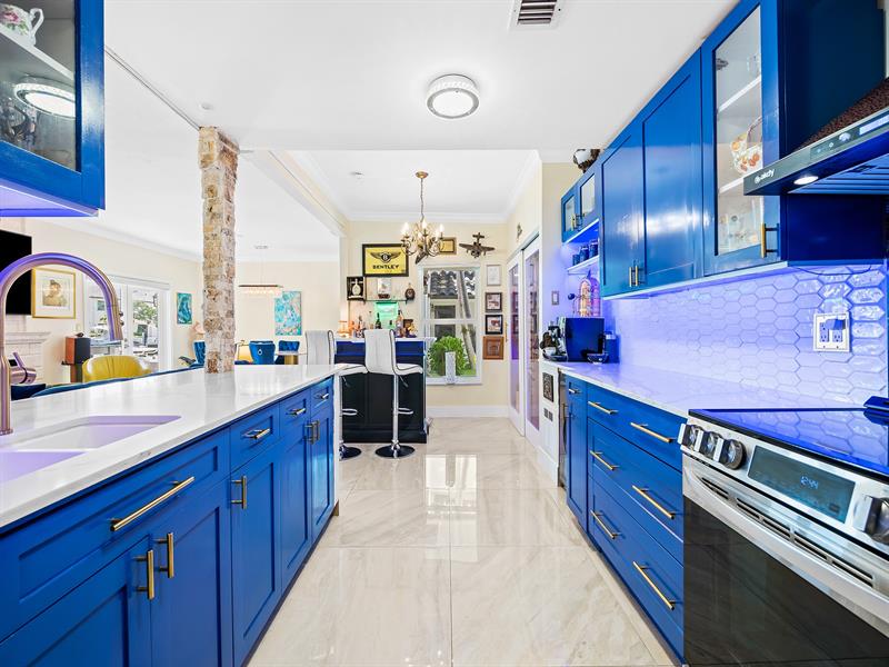 Beautifully renovated home in exclusive Rio Vista with 36’ dock and no fixed bridges – only 1,000’ to the Intracoastal! Featuring a brand-new gourmet kitchen with quartz counters, custom cabinets, wine cellar, draft beer cooler, and all new LG appliances.