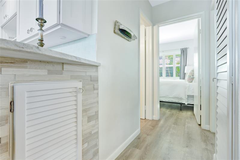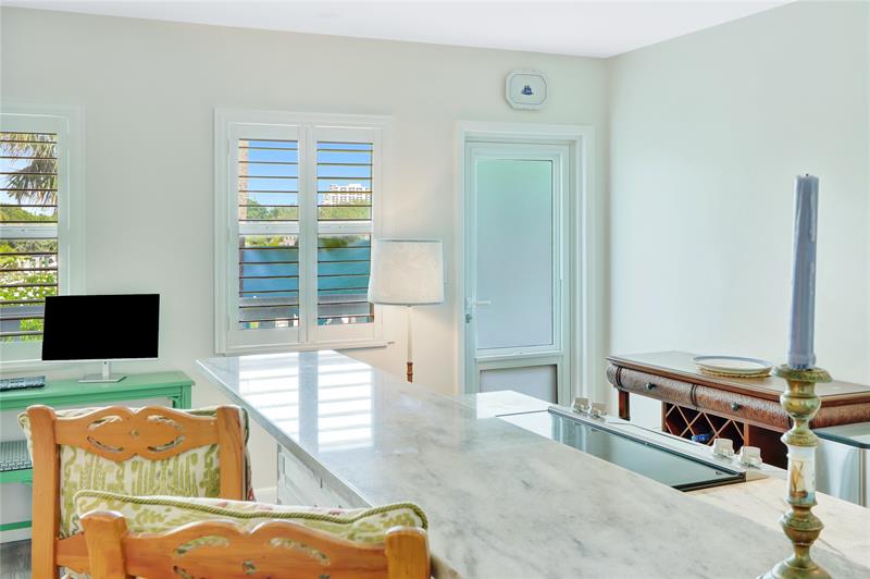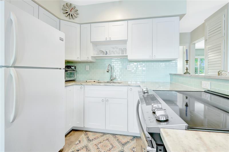 Renovated 2 bedroom unit overlooking beautiful Lake Mayan & directly across from Lago Mar Resort & Club & Fort Lauderdale's widest beach. Perfect for the seasonal snowbird or the year-round resident looking to scale down at this quaint, boutique building-by-the-sea. The stunning new bright and open kitchen features quality appliances, contemporary glass tile backsplash, elegant under cabinet lighting, quartz countertops that include an elevated bar area with gorgeous stone tiling. Natural wood-like flooring throughout unit for a consistent, casual beach feel. The bath has a luxurious feel w/quartz countertop and a frameless glass step-in shower. New Boat Docks &