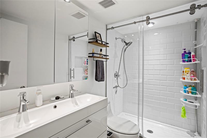 Beautifully remodeled 2 beds/2 baths condo for SALE, located in desirable Lauderdale Tower on the Intracoastal. Unit features updated tile, impact windows, plantation shutters, renovated bathrooms & kitchen. Kitchen includes wall oven, built-in microwave, glass cooktop & wine cooler. The oversized island opens to the living room & features bar seating for four. The expansive living area is over 270 sq. feet and features dimmable soffit lighting. Adjacent to the living area is a large 11x14 ft guest room & renovated bathroom across the hall. The oversize main suite measures in at 11x17 ft. and has dual sliding glass doors that lead to the master bathroom and walk-in dressing area. Building 40yr Cert Completed. It features waterfront pool, exercise room, community dock and BBQ.