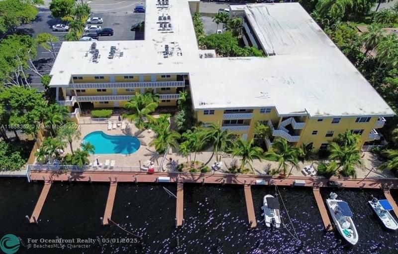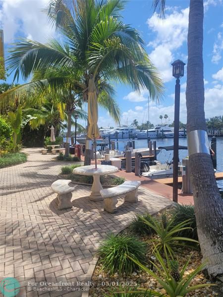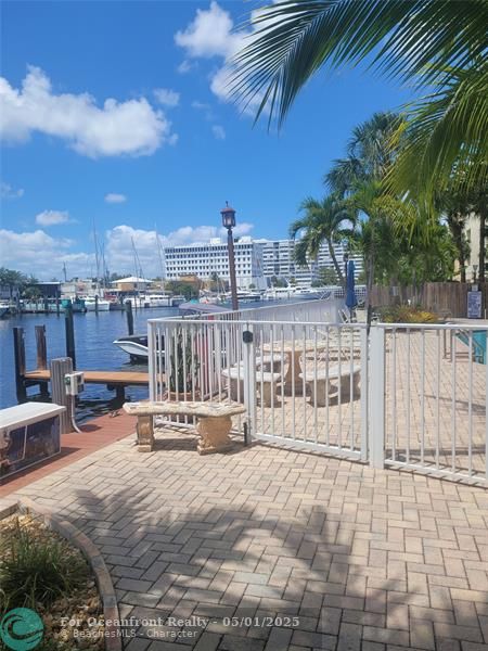 BOATER'S PARADISE..Deep water, no fixed bridges! Best direct water view from front of unit, and lush garden view from the bedroom in this exclusive boutique complex. Freshly painted. All impact windows, bathroom is a "wet room", all tile floors, plantation shutters in bedroom. Tankless water heater, surround sound in living rm. Pool overlooking the river, bbq area, courtyard area outside your front door. Walk to Galleria mall, beaches restaurants, and very easy 1-95 and turnpike access. INVESTOR FRIENDLY (can rent immediately). Owners can rent or buy a dock (when available) for up to a 38 foot boat. Pet friendly. 40 year inspection completed, roof 2016, seawall 2019.