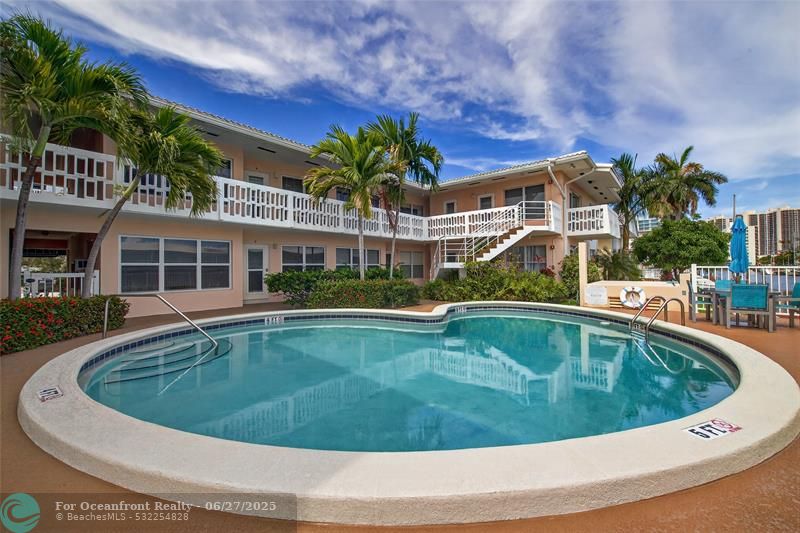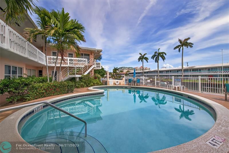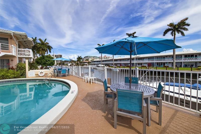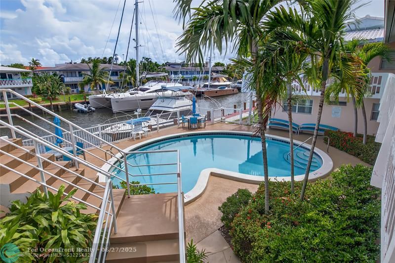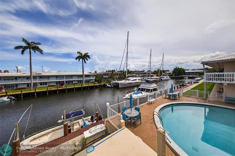 OVER 50' BOAT DOCKAGE AVAILABLE $2.75/linear foot. PERFECT FOR BOAT CAPTAIN, YACHT OWNER, PART-TIME RESIDENT. Move in to this fabulous deep water paradise and spend this winter on the water. No fixed bridges - easy access to world class sailing and fishing! 2023 roof! Spacious floor plan features 2 large bedrooms, 2 full baths, huge living room & renovated kitchen. Relax in the recently upgraded pool! Oakland Arms is ideally located within walking & biking distance to beach, Birch Park and the fabulous restaurants of the Galt Mile, Lauderdale-By-The-Sea, and Fort Lauderdale Beach! Easy access to golf, pickleball, tennis, nightlife, airport. MUST SEE!