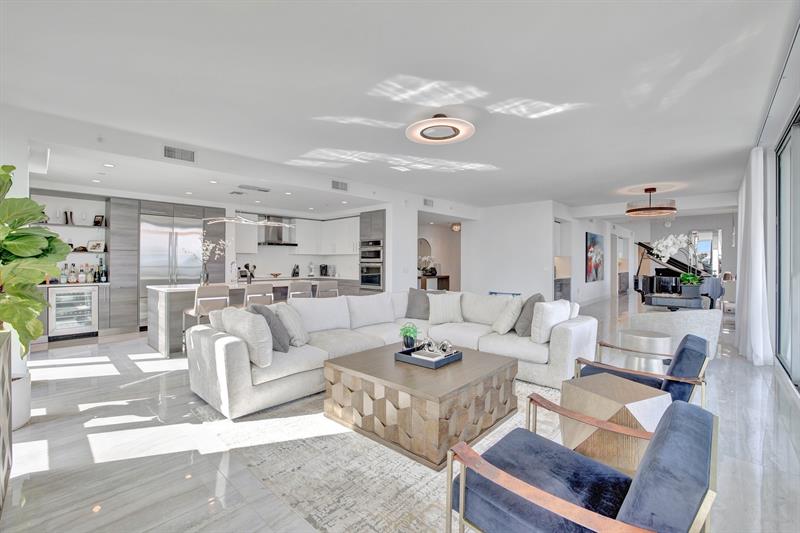 views of Fort Lauderdale. Chefs kitchen with top-tier appliances, European cabinetry, and a waterfall island. 3 living