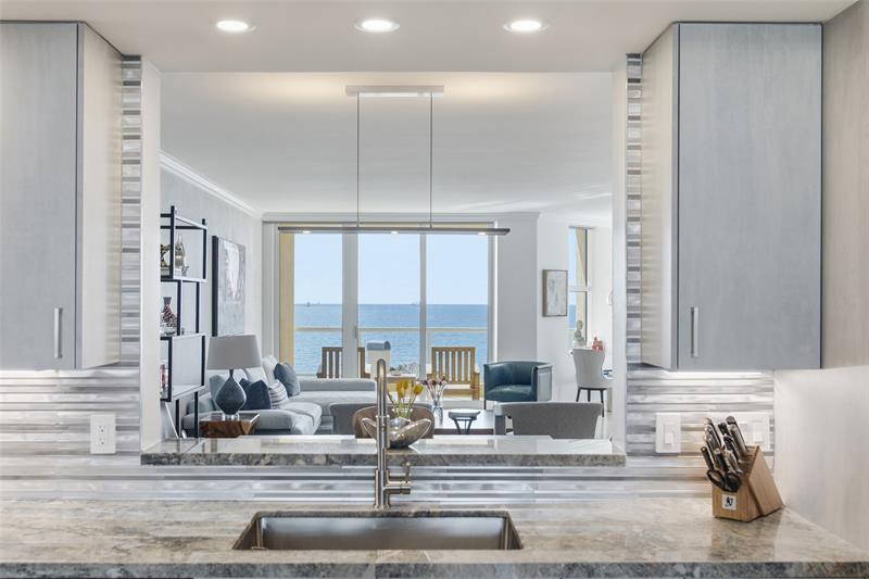 The Palms Condo unit 9D, an impressive Portofino flow-through model with sunrise and sunset views to delight the senses, and enjoy the Florida lifestyle. Magnificent renovations for a comfortable and luxurious living, private elevator to the owner’s foyer, spacious entry immersed in natural light, and ocean views starting from the front door.