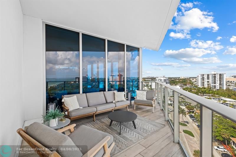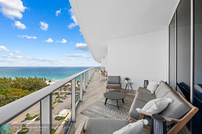 Welcome to the most unique unit at the ultraluxe Paramount. 3 bedroom floorplan inclusive of a Den is only 1 of 2 in the building. Upon immediate entry from your private elevator, the tailor-made entryway doors lead you into the most customized space. Crown molding+millwork punctuate the unit adding design interest other units do not have. The bespoke built-in bar ties into the kitchen aesthetic perfectly. Naturally woven grasscloth wallpaper warm up the unit even more, making a canvas suitable to any type of furnishing style. NE Corner of the building overlooks the ocean and Bonnet House Gardens with no availability for development next door. Location provides much needed shade in the hot summer months. Stunning Ocean views in the day, intracoastal & city views at night from rear balcony