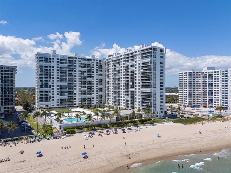 FULLY FUNDED RESERVES & PASSED 40 YR INSPECTIONS! The most desirable “J†stack unit at Plaza East. Enjoy a semi-private elevator from your parking spot directly to your unit, offering convenience and privacy. This unit was designed to offer spectacular ocean views from the moment you enter. The open concept layout features timeless neutral décor in cabinetry, countertops, backsplash, and flooring. Floor-to-ceiling windows & a spacious balcony to enhance the beachfront living experience. Two generous bedrooms boast ample closet space, with added conveniences like in-unit washer/dryer & trash chute. Residents enjoy access to the largest heated pool on the Galt Ocean Mile, beach chaise/umbrella service, a manager's apartment available for rent to guests. NO WORK BEING DONE ON THE BULIDING!!