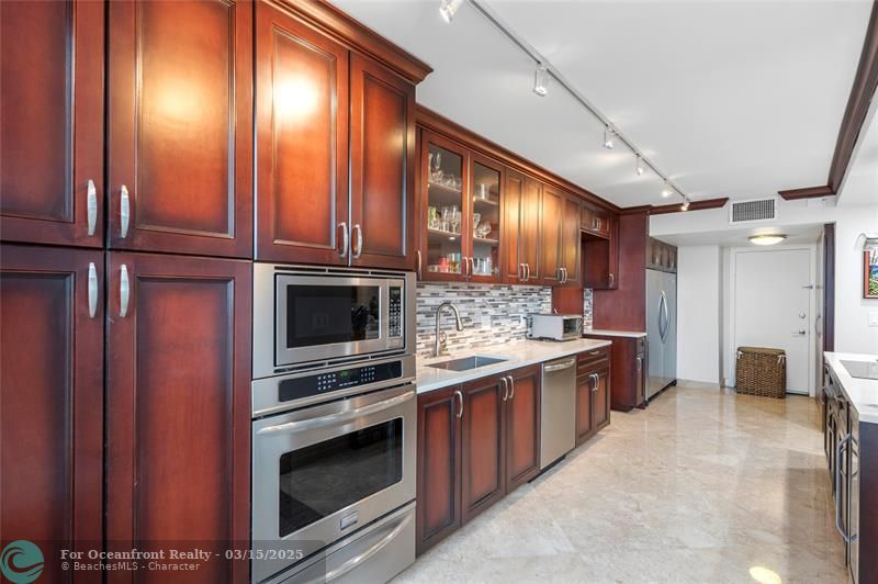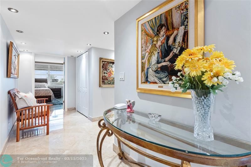 This stunning 3-bedroom, 3-bathroom oceanfront home offers breathtaking ocean views to the east & tranquil Intracoastal vistas to the west. Huge wraparound balcony perfect for entertaining guests. Elegant marble floors throughout, & floor-to-ceiling high-impact windows & doors. The kitchen is a chef's dream w/granite countertops & top-of-the-line stainless steel appliances, including a remarkable 5-foot-wide refrigerator/freezer. Two primary bedroom suites & a 3rd bedroom w/ a bathroom conveniently located just across the hallway, this home combines comfort & style. The unit comes w/an assigned garage parking space & storage locker. Plaza South has a large pool w/an updated pool deck, fitness center, game room, sauna, community room w/kitchen.