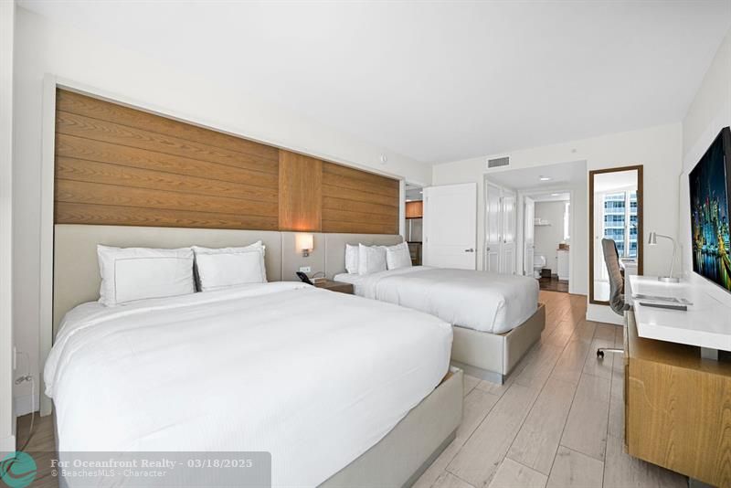 Welcome to The Q Club Resort & Residences, your beachfront getaway. These fully furnished condo-hotel units offer stunning ocean views. Take a look at Residence #1013 - a spacious one-bedroom, 1.5-bath suite featuring two cozy queen beds, a pull-out couch, and a fully equipped kitchen. This charming retreat also boasts floor-to-ceiling impact windows, a private ocean-facing balcony, an owner's closet, and a washer/dryer. It’s the perfect blend of comfort and convenience! As an owner, you’ll enjoy resort-style living with amazing amenities, including multiple restaurants, lively bars, a 24-hour fitness center, a luxurious spa, a tropical pool deck, and room service. For those looking to make the most of their property, there’s an optional rental program managed by Hilton.