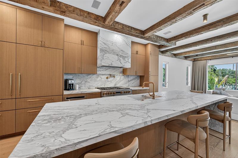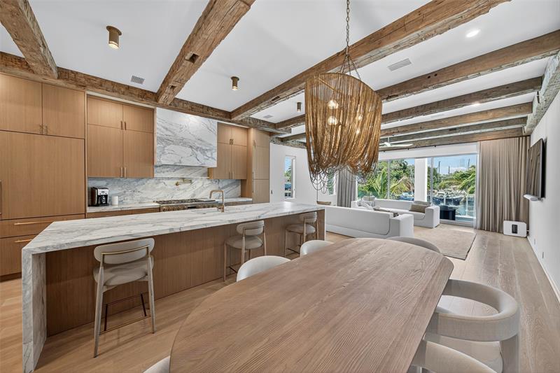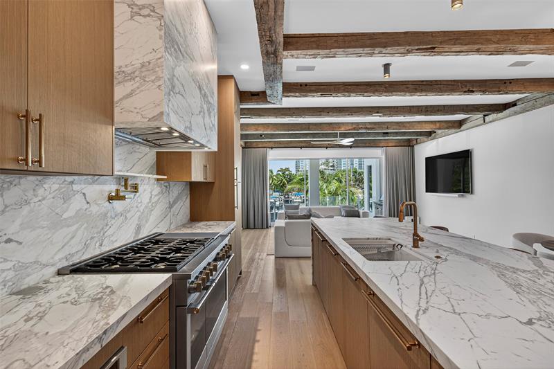 RARE OPPORTUNITY TO OWN A STUNNING 3-STORY MASTERPIECE ON THE WIDEST STRETCH OF FT. LAUDERDALES ICONIC NEW RIVER, COMPLETE W/ A NEW SEAWALL & 70’ FLOATING DOCK! A DRAMATIC, FULL HEIGHT GLASS STAIRCASE, IMPORTED EUROPEAN WT. OAK FLOORS, INTERIOR ATRIUM, & CUSTOM RECLAIMED BARNWOOD CEILING BEAMS SET IT APART! ITALIAN CHEF’S KITCHEN W/ 48†GAS RANGE, 3" CALACATTA MARBLE COUNTERTOPS & OVEN HOOD, & PANELED APPLIANCES WILL AMAZE! EACH BEDROOM OFFERS AN EN SUITE BATHROOM & PRIVATE BALCONY W/ RICH IPE DECKING, WHILE THE SPA-QUALITY PRIMARY BATHROOM CREATES A SANCTUARY OF LUXURY & RELAXATION! 10’ CEILINGS, (2) BUILT IN BBQ’S, LUSH TROPICAL LANDSCAPING, PEBBLE-TEC POOL/SPA, & A PRIVATE ELEVATOR LEADING TO A ROOFTOP W/ SUMMER KITCHEN & PANORAMIC VIEWS OF THE RIVER, CITY SKYLINE, & MARINAS! A "10"!