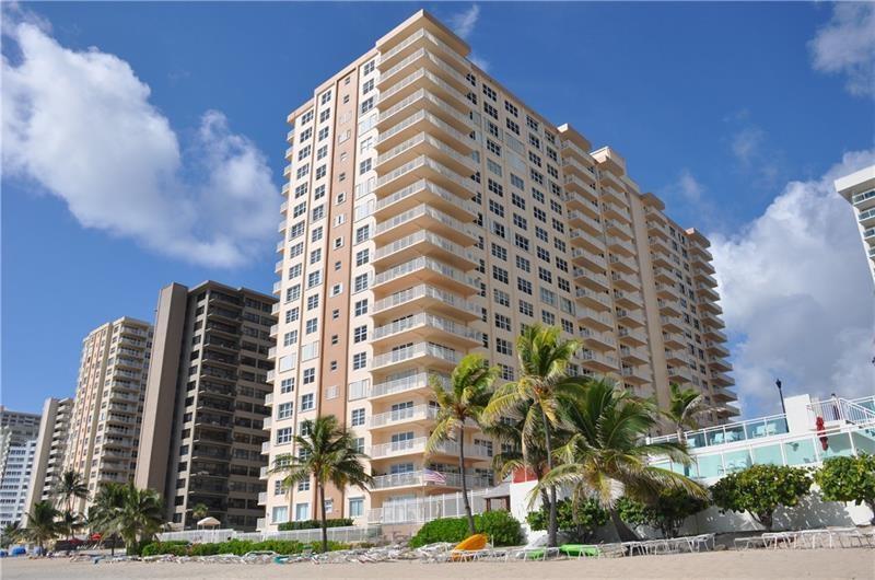Highly sought-after NW corner unit with one of the largest, most desirable layouts in the building. Located directly on the sand of famous Galt Ocean Mile. Enjoy ocean and sunset views from the expansive wraparound balcony. This spacious home features an open kitchen, large separate dining area, oversized living room, and two generous bedrooms. The primary suite offers both a walk-in and standard closet. Includes in-unit laundry room, deeded parking space ($50K value), and same-floor storage locker. Full-service building with heated pool, fitness center, game room, community kitchen, grill area, car wash, and more. Walk to shops, restaurants, grocery, and medical offices. Building has completed their mileston and SIRS inspections. New elevators, concrete restoration and roof.